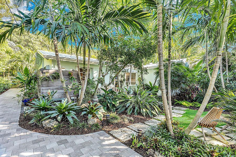 Exceptionally charming ground level and *above flood* 3/2 home in one of Islamorada's most beloved Plantation Key neighborhoods - nestled on an oversized lot which was made private, lush and magical by mature tropical landscaping, professionally designed and installed. This coastal cottage is built to last - made of concrete with a 2019 metal roof. It has a classic layout that's easy to love. Enter through the inviting living room with T&G ceilings, wainscoting, a decorative fireplace and built-in reading nook. Through every window, the views are of greenery swaying in the wind. You'll fall in love on the spot. The primary bedroom and adjacent bath sit on the east side of the home, while two guest bedrooms and a full bath are on the opposite side of the house. Pass through the living room to the spacious kitchen with brand new matching stainless appliances. You'll appreciate the abundant storage and a large built in work space. The dining area overlooks a huge screened patio with views out to more of that spectacular garden. Venture outside to vibrant tropical landscaping and thoughtfully placed hard scapes. Dreamy outdoor shower with endless hot water. The indoor and outdoor spaces are perfect for entertaining friends and relaxing. RV hookup. Convenient Old Road access is perfect for cycling, walking the dog and running - plus allows homeowners to navigate the area with ease even on holiday weekends. You'll have a nearby place to drop your boat in the water no matter which way the wind is blowing. An ocean-side boat ramp is only a block away, and just across the highway you'll find a bay-side boat ramp at Founders Park's full service marina. Being close enough to walk will make the pool, tennis, dog park and festivals at Founders Park even more fun. Reasonable insurances. Room for a pool.