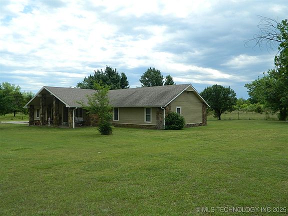 Back on market at no fault of the seller. Quiet Country Living on three acres. Located between Hominy & Pawhuska, beautiful mature Trees. HVAC replaced 6-7 yrs ago. Windows replaced 2008. Four Bedrooms, 2.5 baths, 2 liv areas, formal dining. TWO HWH, water well. Selling "AS IS."