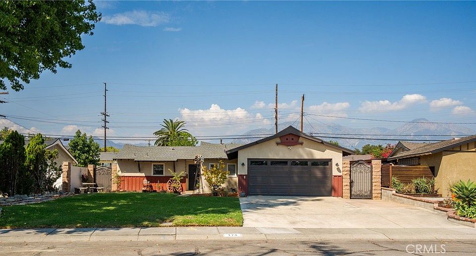 Welcome to this cozy 3 bedroom, 2 bathroom home featuring numerous quality upgrades including a permitted additional rear bonus room with custom handmade sliding barn doors. The functional layout features new appliances throughout the kitchen including a premium Miele dishwasher, new Frigidaire Gallery stove and microwave. Enjoy year-round comfort and efficient cooling with dual-pane windows, central A/C and heating, and a new AC condenser. The attached 2 car garage is fully drywalled/insulated and features recessed and studio lighting, concealed access attic storage, and a wall A/C unit. Dual custom iron gates located on each side of the property lead to an entertainer’s dream backyard guarded by fully grouted block walls that provide exaggerated privacy. The backyard is complete with an oversized granite radius bar top, universal BBQ staging area, brick seating area, oversized fire pit, strategically placed electrical outlets throughout and 100% above ground drainage. Home upgrades also feature a new tankless water heater, new sewer and water lines. Upgraded electrical includes a newer 200-amp main electrical panel, along with a dedicated 30-amp subpanel for the garage and a 60-amp subpanel for the home. Located within walking distance to Downtown Upland and schools. Easy access to the 10 Freeway makes commuting a breeze.
