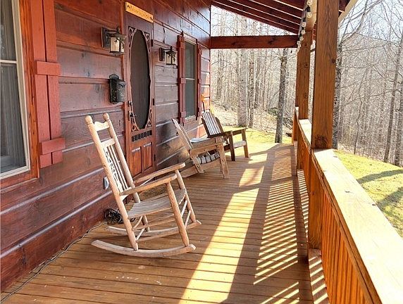 This home has been meticulously cared for, and it shows. This, 3 very large bedroom and 2 and a half bath cabin, sits on almost two acres of land and would be a tremendous second home or investment property. All hardwood floors throughout except bathrooms and upstairs bedrooms large enough for not only the beds but a sitting area as well. Enjoy the outside firepit and a yard that's big enough for badminton horseshoes and more. A big covered deck is there with rocking chairs for someone to begin enjoying those cool summer evenings. On top of all this it's furnished and the furnishings are like new. This freshly stained home is waiting for some lucky family to begin enjoying all it has to offer. This home will not stay on the market long.