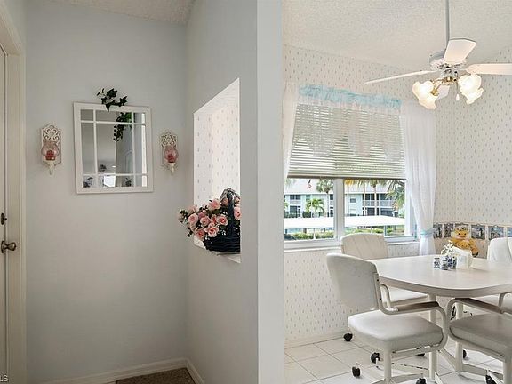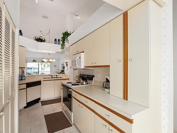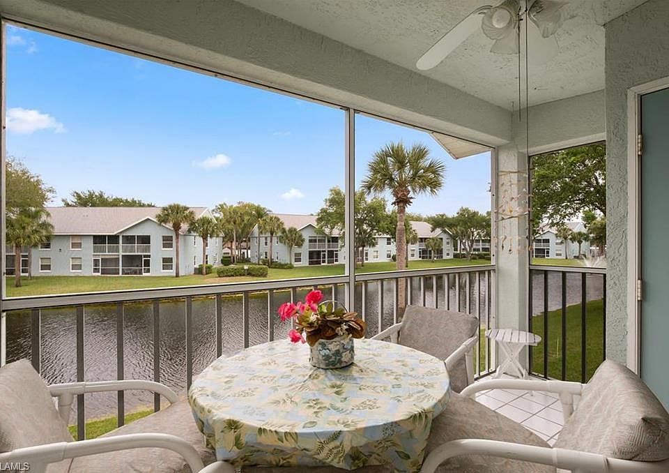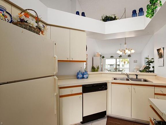 Lovingly-maintained by seasonal owners, this upstairs END unit is situated on a low-traffic cul-de-sac street and right across from the large pool. It features volume ceilings in the great room, panoramic views from the lanai of the lake and fountain and is ready for your special touches. Newer HVAC (2017,) as well as washer and microwave. Turnkey-furnished and ready for quick occupancy. Deeded carport space and extra storage too. Pipers Pointe is pet-friendly, offers two pools, a community room, is not a 55+ complex and offers one of the LOWEST CONDO FEES IN NORTH NAPLES. Prime North Naples location close to everything. Call today to arrange your private showing!