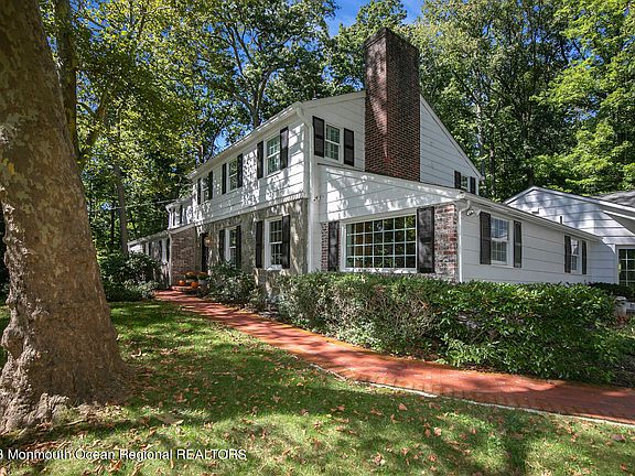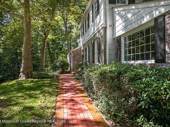 - Hartshorne Woods, over 790 acres of wooded bliss. With Hiking and biking trails out your door, kayaking and fishing, and wildlife to enjoy. 1908 Colonial style home on over 2 acres of mature landscaping has 4 bedrooms and 3.1 baths in main house, and a guest suite with 2 bedrooms, full bath with deck to enjoy these gorgeous woods! Formal living room with fireplace, large, gorgeous dining room with built-in seating - Family room with another fireplace & two French doors to the large brick patio for outdoor entertaining. Sun drenched sunroom with cathedral ceiling, perfect office with built ins and screened in porch! Master suite with full bath and separate shower, three more bedrooms, one with en-suite. Hardwood floors throughout main house, decorative molding and plantation shutters - Two car garage and full unfinished basement. Newer septic, windows and doors, new furnace and new full house generator. Gorgeous winter water views for you now, a very special home and LOCATION, LOCATION, LOCATION! Five minutes to Rumson and Atlantic Highlands, Sandy Hook and easy commute to the city on the Sea Streak ferry!