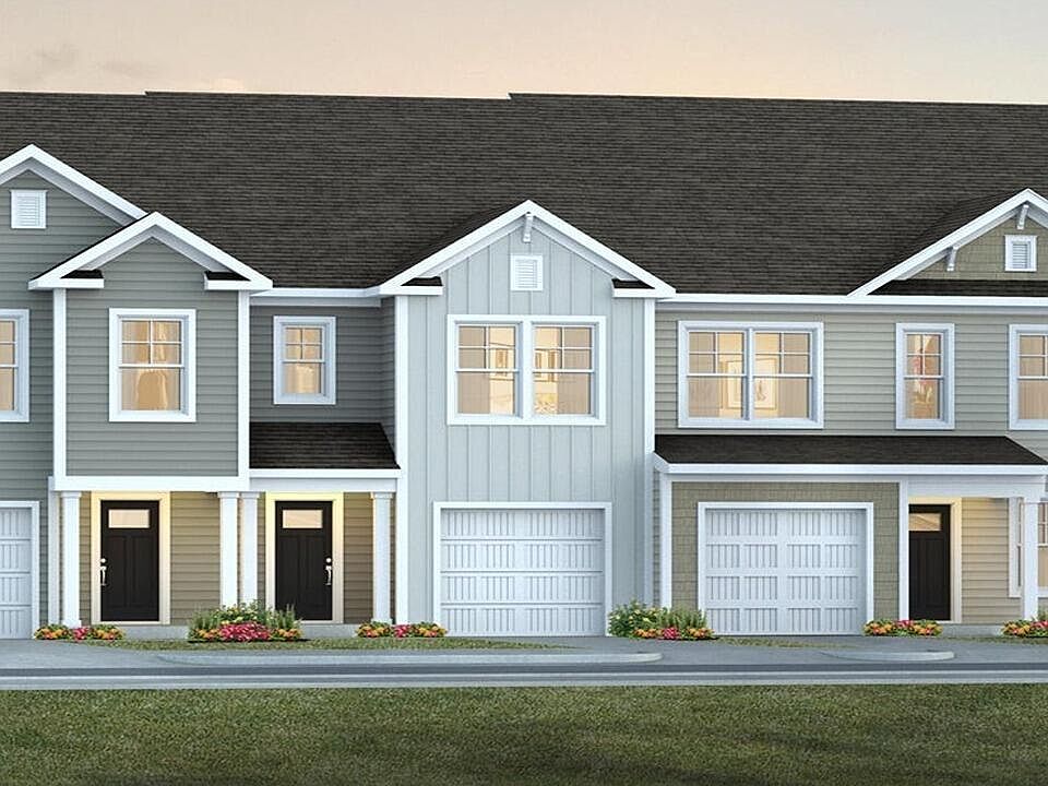 Welcome to the Denmark, a two-story townhome with a single car garage and doublewide driveway is situated on a desirable homesite with a wooded view. You will enjoy the large kitchen island where everyone will be when you are entertaining. Other interior features include white cabinets, granite countertops in the kitchen, 4 burner gas range, refrigerator, dishwasher, microwave and even a garage door opener. Upstairs you'll find the large primary bedroom with cathedral ceilings with walk-in closet and huge 5ft shower, double vanities, two secondary bedrooms, bathroom and spacious laundry room.Pine Hills in Cane Bay, Summerville, offers a serene suburban lifestyle. Nestled amidst lush landscapes and elegant homes. Residents enjoy nearby parks, shopping, and dining, making it a family-friendly haven with a charming southern atmosphere. Amenities include 3 pools, with a 2-story water slide. Nearby is the largest YMCA on the East Coast, and the community offers easy access to I-26. All new homes include D.R. Horton's Home is Connected® package, an industry leading suite of smart home products that keeps homeowners connected with the people and places they value most. This smart technology allows homeowners to monitor and control their home from their couch or across the globe. Products include touchscreen interface, video doorbell, front door light, z-wave t-stat, and keyless door lock all of which are controlled by an included Alexa Dot and smartphone app with voice! Call to schedule your showing today and start envisioning your new life surrounded by nature's beauty! Directions: From Hwy 176, Turn onto Cane Bay Blvd. At the second traffic circle, that the third exit onto Fair winds Blvd. At the traffic circle take the first exit onto Horizon Ridge Drive. Turn right at Lake Ridge Drive. Turn left at Ivory Shadow Rd. Turn right on Haventree Court, then left onto Golden Embers Way and the home is on the right. *Square footage dimensions are approximate. *The photos you see here are for illustration purposes only, interior, and exterior features, options, colors and selections will differ. Please reach out to sales agent for options.