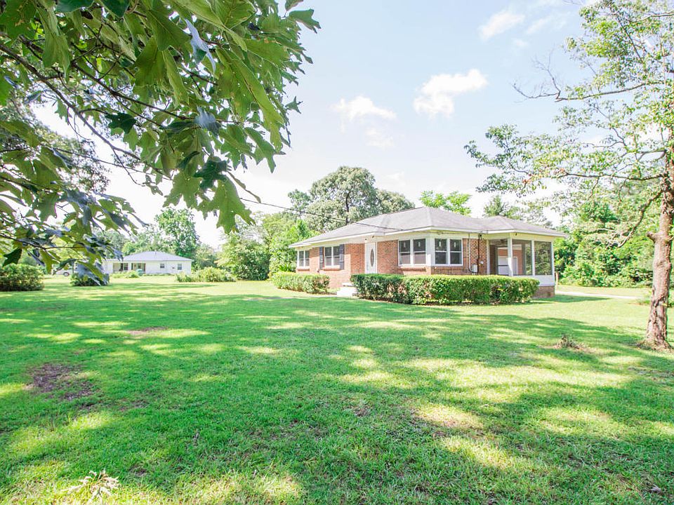A lovely 3 Bedroom 2 Bath home which sits on a very nice and peaceful acre+ lot. This all brick home features hardwood floors and ceramic tile. You will fall in love with the screened in porch where you can sit out and enjoy the benefits of country living but with all the conveniences of living in the city. New garage and bath added a few years ago. Many recent renovations including kitchen, bathrooms, windows, and a refinished hardwood floor. Ceiling fan in every room and fresh paint. Yard is full of many mature trees and flowers including palms, roses, and a persimmon!