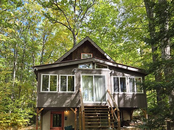 This adorable 3-bedroom, year-round home with water access on Moose Pond comes furnished offering the perfect blend of relaxation and adventure. Situated on a paved, public road just minutes from Pleasant Mountain, you'll enjoy effortless access to all-season recreation—spend your summers on the water and your winters on the slopes! Inside, the first floor features a comfortable bedroom, a full bath, and an efficient kitchen that opens to a welcoming dining area and living room with a fireplace, creating the perfect atmosphere for chilly evenings. A charming, fully glassed-in four-season porch extends the living space and provides a peaceful spot to soak in the wooded views no matter the weather. Step out back to a private deck ideal for grilling, entertaining, or simply unwinding in the fresh air. The second floor offers two additional bedrooms and a convenient half bath, giving guests or family members their own space. The full walkout basement provides excellent storage, easy outdoor access, and a dedicated area for a washer and dryer.