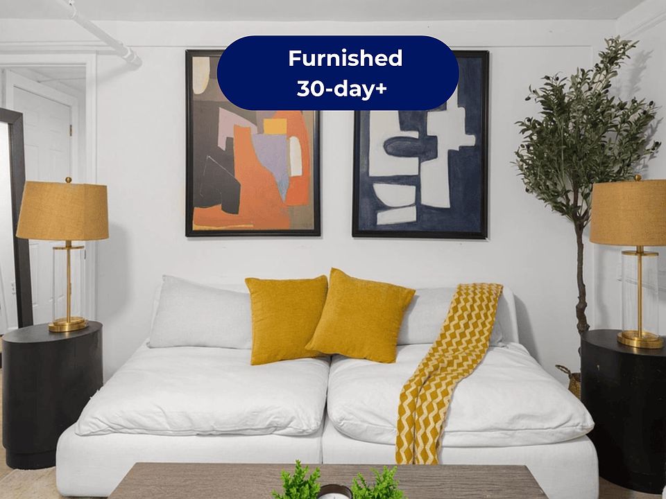 This apartment offers a range of high-end amenities, including ultra-luxe linens, blazing-fast Wi-Fi, and a fully furnished space designed for comfort and style. Enjoy the convenience of an in-unit washer and dryer. The apartment also features beautiful hardwood floors throughout, adding warmth and charm to the space.