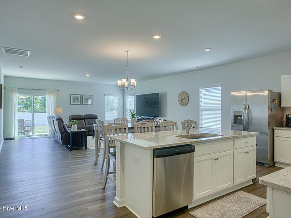 Imagine living in a home that balances modern living and offers a small-town country life feeling - Country Road Take Me Home! This is no standard new construction home. Move in ready and just completed in December of 2024, here are a couple highlights: 6 foot vinyl privacy fence, new 12x16 shed, extended 12x20 patio, 220v plug in garage, garage door opener with remote, programmable thermostats, granite countertops, installed kitchen backsplash, all stainless steel appliances, recessed lighting, ceiling fan pre-wire in family and primary bedroom, covered front porch, and the washer and dryer will convey. The only thing missing in this 3 bedroom/2 bath home is YOU! So come take a look at this awesome home and community at Squires Run Village! This charming new community nestled in the heart of Richlands, NC offers the perfect location for those who want a country setting with easy access to local schools, shopping, dining, and recreational opportunities. Whether you're enjoying the tranquility of the country or taking advantage of nearby conveniences, you'll find everything you need right here.