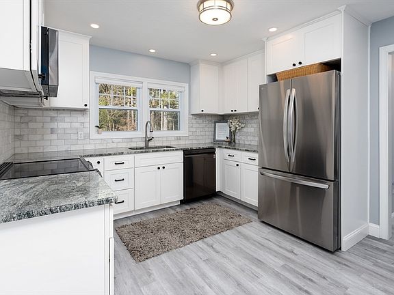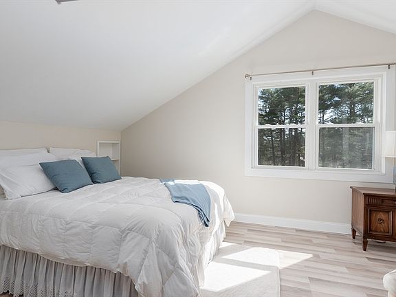 Beautifully renovated 3 bedroom, 2 bath cape set on a gently sloped 1.38 wooded lot! Your new home has been meticulously cared for with a layout that seamlessly connects the living and dining room to the modern, white kitchen, complete with young stainless appliances! Cozy up in front of the fireplace in the living room or watch the seasons change with a cup of coffee from your vintage porch! Flexibility is offered on the first floor with a full bathroom alongside a guest room/office. The second floor boasts another two bedrooms sharing a gorgeous full bathroom and a rare 2nd floor laundry room/office! Additional office or workout space in the basement, plus lots of storage. Enjoy your enchanting yard from the patio, plant veggies in your secure raised garden or explore your own woods! Large cleared flat land at top of driveway could be a great future location for a separate garage.