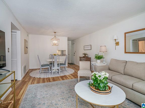 Conveniently located just minutes to Brookwood Medical Center, Samford, Homewood and Vestavia! Move-in ready! Wonderful two bedroom, one bath condo with a  balcony with a beautiful view, assigned parking, a well-kept pool and lovely grounds. New in 2023 Kitchen: countertops, microwave, hardware, faucet, light fixtures (2) Den: New flooring (waterproof laminate), French Doors, sconces to remain, light fixture in dining,  Bathroom:  faucet and toilet, paint including cabinets, new towel bars and hooks Bedrooms: New flooring and baseboards, Balcony -pressure washed and painted flooring HOA includes water, sewer, garbage, pest control.