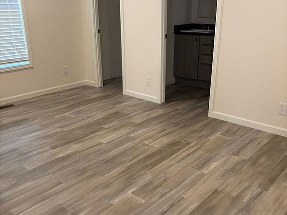 This home is a 3 bed/2 bath set up in a split floorplan. The master bath has double sinks and a tub/shower combo. The home has vinyl flooring through out - except for one bedroom. This one bedroom has brand new carpet.