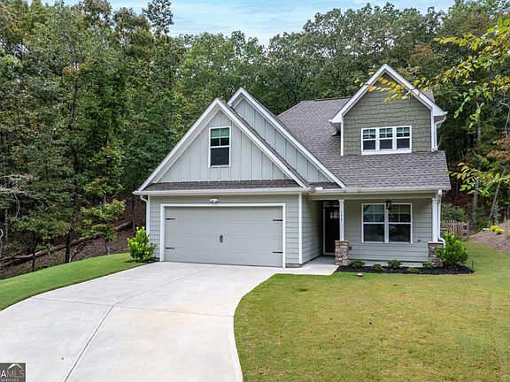Welcome home to the amazing community of Lake Arrowhead. Nestled in the Foothills of the North Georgia mountains, this Private Gated Community with a 540 Acre lake offers a wonderful outdoor lifestyle. Conveniently located near the north gate, this better-than-new 2023-built craftsman-style home offers many thoughtful upgrades and is move-in ready-without the wait of new construction or the hassle of buying appliances! Located on a spacious, tree-lined lot offering privacy on two sides, this home combines modern features with timeless style and curb appeal. An extended driveway leads to a two-car garage complete with epoxy flooring, custom storage, workbench, and a transfer switch for your generator or battery box to support essential needs. Inside, the home features wide plank luxury vinyl flooring throughout, neutral paint tones, recessed lighting, and high ceilings. The open-concept main living area includes a spacious living room with an electric fireplace and large windows overlooking the custom patio and backyard extending beyond the fence. The kitchen includes upgraded stainless steel appliances, modern grey cabinetry, granite countertops, tile backsplash, a stone-accented breakfast bar, and an unbelievable over-sized walk-in pantry with custom California Closet shelving. The main-level primary suite offers an oversized bedroom with a dimensional accent wall, a large custom walk-in California Closet, and a full en suite bath featuring granite his & hers vanities, tile shower, and off-white cabinetry. A second bedroom is also located on the main level with a large closet and access to a full bath with a granite vanity and shower/tub combo. A custom mudroom area and laundry room complete the main floor. Upstairs, there are two additional spacious bedrooms, each with large closets, and a shared full bathroom with a granite vanity and shower/tub combo. There is also bonus storage in the finished mechanical room. Enjoy outdoor living with a custom stone patio off the main living area, including a covered section for year-round use and an extended area ideal for fire pit entertaining and grilling. The backyard is fully fenced and tree-lined for privacy and includes a river rock dry bed, and additional drainage. This property has a full irrigation system. Adding to the existing landscape are two Blue Atlas Cedar trees and a Rising Sun Redbud tree. The house includes stainless steel leaf filters on the gutters, cordless cellular window shades, and screens. Offering the benefits of new construction with premium finishes and upgrades already completed, this house is ready for you. A quick drive from Downtown Canton, this home offers peaceful living with access to local shopping and restaurants. Enjoy all that Lake Arrowhead has to offer with 5 star resort amenities, parks, walking trails, two pools, tennis, pickleball, golf, clubhouse, restaurant, private lake, marina and so much more!