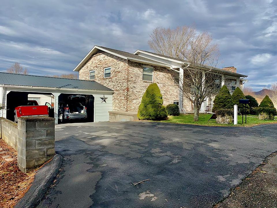 Spacious and well maintained home, offering 2 separate living quarters with each having private access. Main level features 3 bedrooms, large foyer with a beautiful staircase, 2 full baths, living room with brick fireplace/gas logs, well-planned kitchen with lots of lighting with updated cabinet facing and counter top, walk-in pantry, and formal dining room with access to a lovely sunroom with access to side decks. Finished walk-out basement offers den with fireplace, living area (12x18) , kitchen and dining area, misc. room perfect for crafts, bedroom or office, laundry area, and a full bath with jet tub. Lower level has 3 separate entrances . Lower covered patio boast lots of flowering shrubs. Nice garden area and lots of fruit bearing trees, Exterior amenities include front covered porch, 24x24 carport, two- level workshop with solar and electric generators. Must see to appreciate the value and quality!