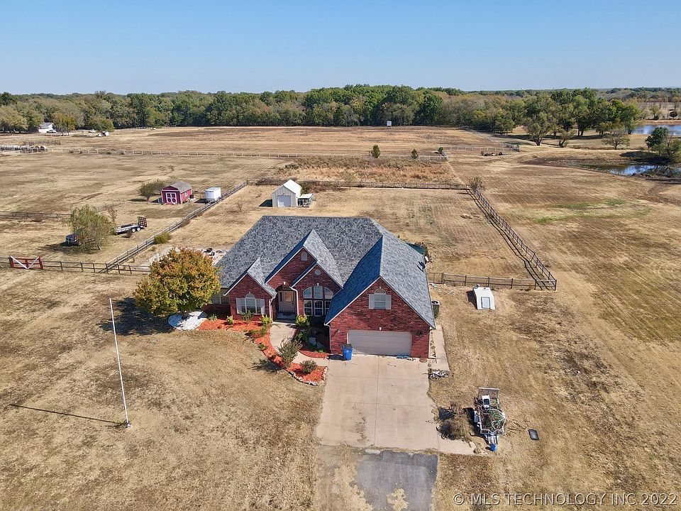 Lovely home located just outside of Pryor on 2.27 acres with 4 bedrooms and an office with built-ins. Home has gas fireplace, formal dining, 12 ft ceiling in great room, eating area in kitchen and split bedrooms with the 4th bedroom upstairs. Outside features include hot tub, above ground pool, nice deck ideal for entertaining, metal shop and room for a horse if you want. See to appreciate all this home has to offer.