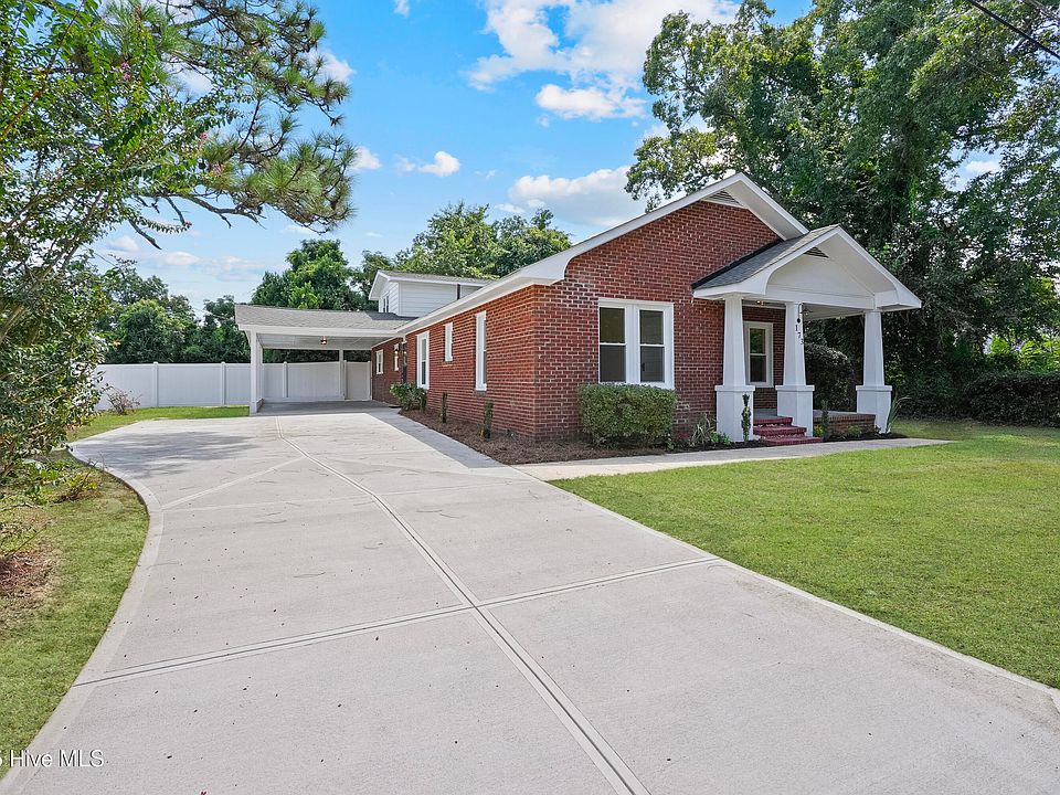 A true gem under 400k, in the desirable area of Southern Pines. Beautifully restored brick bungalow. With 2,016sf of heated living space, plus a half basement that offers so much potential. This home offers the perfect space to spread out, & to host. This property boasts 3 bedrooms on the main floor, to include the elegant primary suite, plus an additional oversized bedroom w/2 closets, that can be used as a flex/bonus, upstairs. Offering 2.5 baths, all beautifully & meticulously updated with new lighting, vanities, & all the bells and whistles. The primary suite offers a stunning primary bath, with a tiled shower, & so much attention to detail, & the primary closet is trimmed out with beautiful custom shelving. The kitchen boasts custom cabinetry, beautiful quartz counters with detailed edging. New appliances, hardware, lighting, & a custom pantry with a bar. The dining room is trimmed beautifully, maintaining its classic style and offering an elegant dining experience. New windows throughout the home, new flooring, paint, fencing, driveway, patio, hardie siding, & so much more. Truly a tremendous deal, do not miss out!
