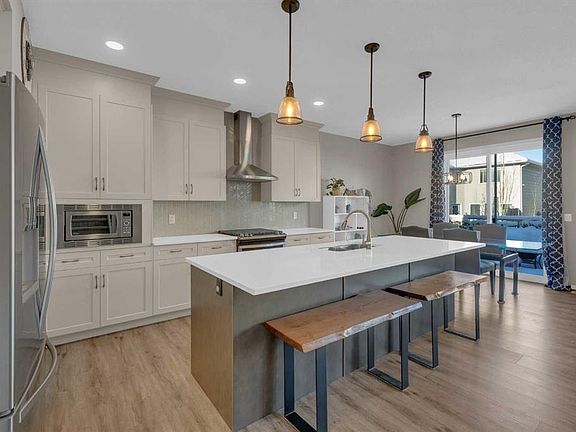Beautifully maintained and upgraded home in the desirable community of Kings Heights in south Airdrie. This stunning air-conditioned property offers an exceptional layout and premium finishes throughout, in a fantastic location with quick and easy access to the highway. Step into the impressive main floor featuring soaring cathedral ceilings and a dramatic floor-to-ceiling fireplace in the bright and open living room. A convenient main-floor office located just off the front entrance provides the perfect workspace for remote professionals or quiet study. The chef-inspired kitchen showcases gorgeous quartz countertops, a 9’ island, stainless steel appliances including a gas stove, and a walk-through pantry leading to the spacious mudroom off the garage. A generous dining area opens onto the oversized deck with gas BBQ line, perfect for entertaining. A convenient 2-piece powder room completes this level. The open staircase leads to the upper level where you’ll find a spacious primary bedroom complete with a luxurious 5-piece ensuite featuring a soaker tub, stand-alone shower, quartz counters with double sinks, and a private walk-through closet that connects directly to the laundry room. A large bonus room with vaulted ceiling, two additional bedrooms, and a 4-piece bathroom complete the upper floor. The walkout basement offers endless possibilities with bathroom rough-in and direct access to the ground-level patio and fully fenced yard. The oversized garage includes 220 power, an 8’ door, and abundant storage space. Additional features include: vinyl plank flooring on the main level, carpet upstairs, tile in bathrooms and mudroom, soft close cupboards and drawers throughout, permanent exterior lighting and excellent curb appeal! Located just a short walk to Heloise Lorimer School (K-5), parks, pathways, shopping, and more. A truly exceptional home in a prime family-friendly location—don’t miss this one!