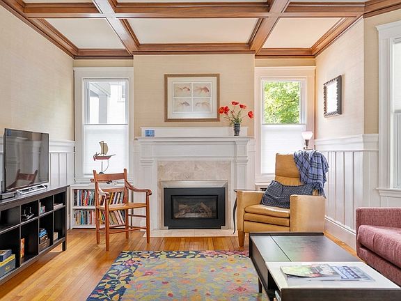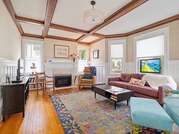 This elegant Coolidge Corner Condo features 2,510 s/f of renovated space. A custom-built entryway welcomes you; the living room boasts bay windows, beamed ceilings, wainscoting, and a gas fireplace. The dining room with china cabinet and wainscoting connects to the impressive chef's kitchen, high-end appliances, cherry cabinets, and granite countertops. The primary suite offers a walk-in closet and a luxurious marble bathroom. Another bedroom and full bath complete this floor. Find two large bedrooms, a full bathroom, and an in-unit laundry room downstairs. Enjoy ample light, Hydro Air HVAC, recessed lighting, hardwood floors, and marble baths. Outside, the unit includes TWO tandem parking spaces & wood shed. Shared with the upstairs unit: a visitor parking spot, a fenced yard with perennial gardens, & basement storage. Wake up to the aroma of Clear Flour Bread while sitting on your private porch near Lawton Park, Florida Ruffin Ridley School, B and C Lines, shops, & more.Welcome Home!