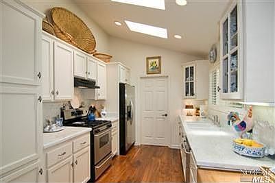 This elegant renovated St. Helena 2 bedroom 2.5 bath w/den home is situated on a private county lane in one of the most sought after locations in St. Helena. A county setting yet an easy stroll to St. Helena shops & restaurants. Outstanding features include vineyard views, updated kitchen & baths, single level, walnut floors, high ceilings, french doors, fireplace, lovely master suite, den/guest suite, rear yard seasonal creek and two car garage.