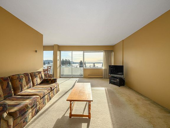 Gorgeous water views are enjoyed from this very special 958 sq.ft. 2 bedroom, 2 bathroom suite with an almost 200 sq.ft. patio. This bright south facing suite offers views from every room. Located in the heart of Ambleside with all the conveniences of shopping, restaurants, seawall, and transit. Enjoy the outdoor pool and beautifully maintained gardens from this extremely well run adult oriented and sought after building. Maintenance fees include property taxes, cable, heat, hot water, gardening and live in caretaker. Also included is a storage locker and 1 covered parking in front of the entrance. This building is very special and this suite is waiting for your decorating ideas.