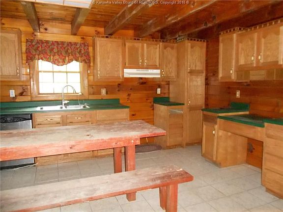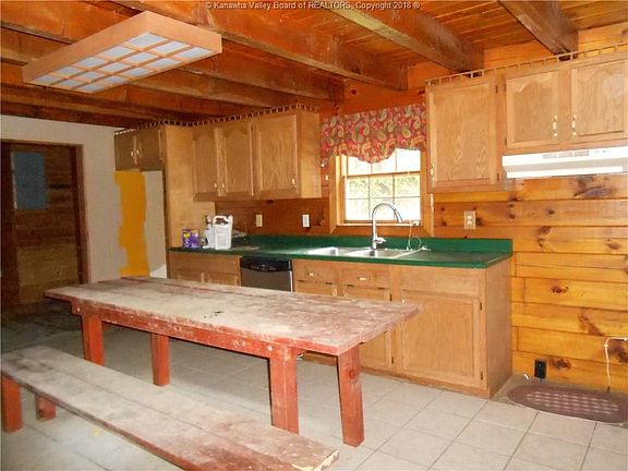 Two Story Log Home With Open Living Room, Dining Room, Kitchen Area, Four Bedrooms And Two Baths, Sits On A Acre, Needs Repairs.