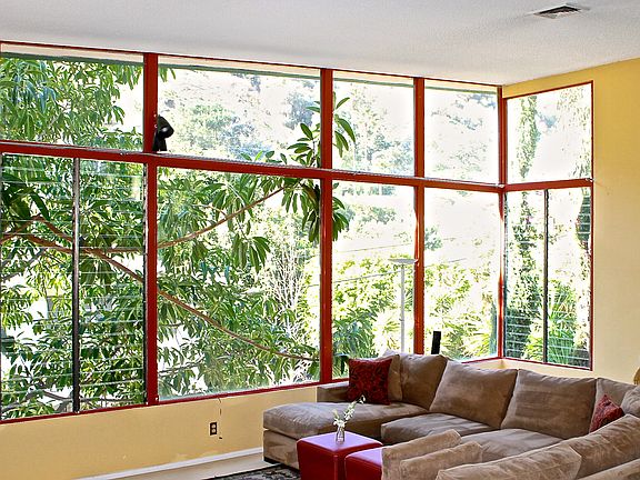 Mid century-modern, designed by Alfred T.Wilkes, totally renovated in 2014 single story on a dbl-sized lot adjacent to the park. Open floorplan, high 16ft ceilings, engineering wood floors, walls made of expansive windows. This hillside jewel, meant to be for the most particular clientele, art collector, artist who is looking for the privacy. Gourmet cooks kitchen with Viking s/s appliances, European custom made cabinets, master bed with gorgeous views & walk in closet.ONE BEDROOM HAS A SEPARATE ENTRANCE that could be great office or simply a separate unit with its own bath and kitchenette. Very PRIVATE backyard w/pool, spa, built in BQ. Walking distance to tranquil Franklin Canyon, minutes to Rodeo Drive and the Sunset Strip. No artistic element has been spared in this unique retreat! Could be sold furnished or not. Houses for sale are really rare on this street.