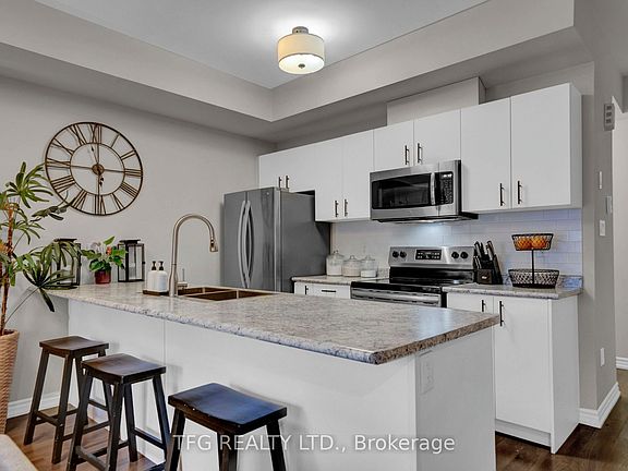 Welcome to this beautifully maintained, modern condo townhouse offering an open-concept layout filled with natural light. Facing south, this home features large windows throughout, enhanced by custom zebra blinds that create the perfect balance of light and privacy. The main floor showcases stylish laminate flooring, a powder room, a spacious living and dining area, and a contemporary kitchen with stainless steel appliances and an upgraded sink - ideal for both everyday living and entertaining. Upstairs, you'll find two comfortable bedrooms and one full bathroom, providing ample space for families, professionals, or downsizers. Additional highlights include an attached garage with a private driveway for convenient parking and a brand-new roof (2025) for peace of mind. Located just minutes from Highways 401 & 407, Pickering GO Station and a wide range of shopping, dining, and amenities, this home combines comfort, style, and unbeatable convenience. Move-in ready and waiting for you to make it your own!