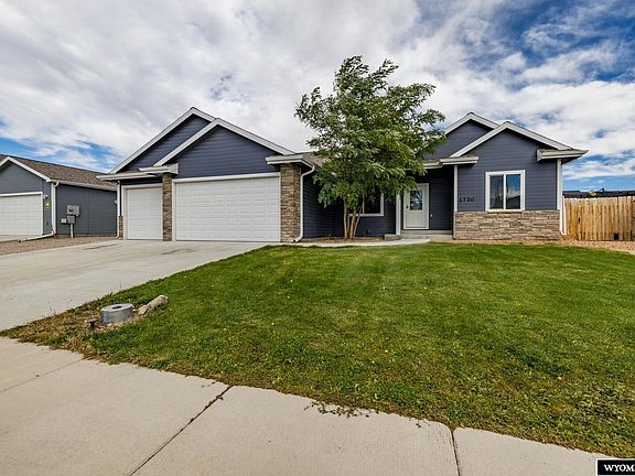 Step into this beautiful 2020 home, constructed by Current Home LLC, full of natural light & with high-end upgrades, including cabinetry & quartz countertops. This Absaroka model offers 1,555 square feet over 1,555 square feet for a total of 3,110 square feet of living space. It features five bedrooms, 2.75 baths, and main level laundry. The entry-level unit has three bedrooms (one of which is the primary, featuring a primary bath with double sinks) and one full bath. The basement is completely finished & has two bedrooms & a 3/4 bath, along with a large family room. Priced to sell at $465,000. Contact Angela Kay Haigler with Stratton Real Estate at 307-258-2951 for your personal tour.