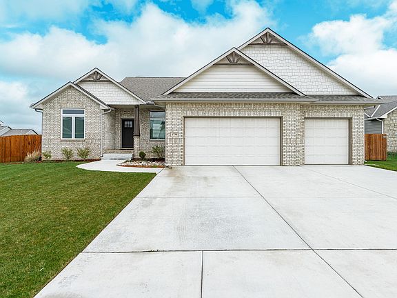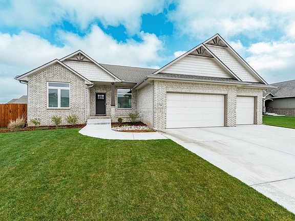 HONEY, STOP THE CAR! Welcome to Blackstone Ct. situated in the desirable Blackstone community within the Maize School District. This home sweet home boasts with pride of ownership. Arrive and you are welcomed by the cul-de-sac lot, immaculate landscaping, beautiful brick facade and darling curb appeal. This custom built ranch home features five bedrooms, three bathrooms and three car garage. Walk through the front door and you are greeted with the open-concept floor plan. Relax around the fireplace after a long day. Entertain family and friends in the beautiful kitchen featuring large island with eating bar, granite countertops, stainless steel appliances, and walk-in pantry. Gather around the table and enjoy a gourmet meal in the expansive dining space. Escape away after a long day in this master bedroom oasis featuring a walk-in closet, two sinks, large soaker tub with jets, and separate walk-in shower. You will appreciate the main floor laundry room and drop zone nook which connects to the master suite. There are two additional bedrooms, hall bathroom and storage closets also located on the main level. The basement is the ideal space for day to day living and features view-out windows. Enjoy the big game on the projector which remains with the home, along with the built-in storage cabinets ideal to stow away games, toys, and more! You will appreciate the recreation space and rough-in plumbing for a future wet bar. The fourth and fifth bedroom, third full bathroom, large storage rooms are also featured in the basement. One of your favorite features about this home just might be the covered deck where you can sip coffee in the mornings, relax with a good book in the afternoons or enjoy the sunset in the evenings! You will appreciate the patio space, fully fenced backyard and sprinkler system on well water. Neighborhood amenities and Maize Schools are just a few more reasons you will love this address. WELCOME TO BLACKSTONE!