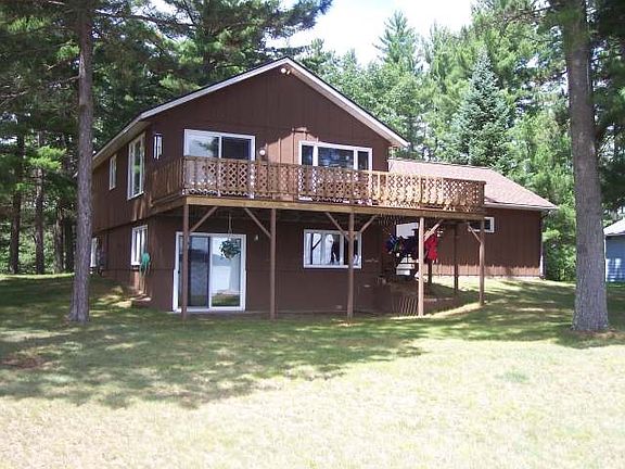 A fantastic opportunity on Big St. Germain Lake! The lot is gorgeous, giving you a nice private setting nestled among towering pines on the western shore of Big St. 200' of prime level sandy frontage offering wonderful swimming, boating and beautiful views all yr long. This home offers a nice floor plan with an open concept liv rm, din rm and kitchen, all with vaulted ceiling and wood floors, large picture windows. The lower level walk-out is nicely finished with knotty pine walls, a wood stove, and lots of windows. A spacious bedroom, and full bath make a nice area for your guests. You're going to just love the adorable guest cottage...so charming! It features 1 bdrm, a nice great rm, and a wonderful lakeside deck. This property also has a creek running through it offering lots of wildlife sightings, like otters and turtles. There are 2 stor. sheds (1/2 log cottages in their previous life) that provide excellent stor space for your toys, workshop or hobby.