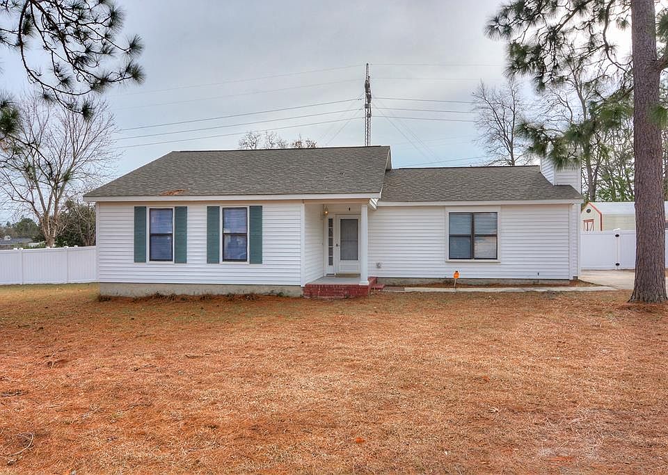 Updated ranch floor plan on nearly an acre lot with wheelchair accessible features! 3 bd, 3 full baths PLUS a large bonus room. Interior is freshly painted, the living room has a stone wood burning fireplace, kitchen has been updated with stainless steel appliances & tile backsplash. Wheelchair accessibility in the back bathroom with a roll in shower, back exterior door has a no step entrance, and bonus room has 2 doors both wheelchair accessible! The large, flat yard is fully fenced with a solid vinyl fence, has a beautiful gunite pool (added in 2009) & TWO outdoor storage buildings (one includes window unit HVAC.) New water heater installed in 2018. Roof is 2 years old. Mounted cameras installed on property with security system. (Verify school zones if important).