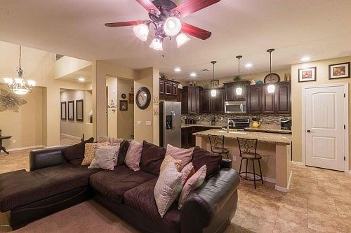This is it. Gorgeous, Upgraded and move in ready. The moment you walk in you see the upgrades and well maintained home. Beautiful thick granite and awesome backsplash. SS Appliances, Patterned Tile Floors, 2'''' Faux Blinds, Upgraded Carpet & Pad. Family Size Loft Upstairs & wait till you see the Master Suite. Upgraded Wrought Iron at loft and full Bath & Office or Guest Room downstairs, Secondary Rooms are nice and big. Extra spacious Laundry room. The 3 car tandem garage has new storage closets and epoxy flooring. Lyons Gate has 3 community pools, a club house, tons of green belt and play areas, and talk about access to the Mall, Top Golf, numerous other shopping areas, and the freeway proximity, it''s all here.