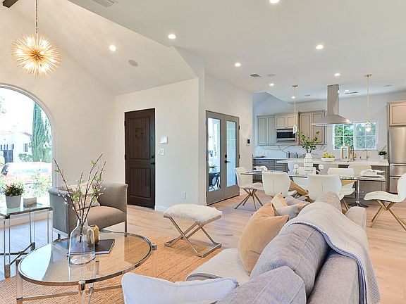 Sophisticated 1-Story Spanish style home in Prime Picfair Village! 3 beds - 3 baths in 1600 SF main house. Additional 373 SF (total for both 1977 sq ft ) in fully approved & permitted ADU w/ own address .Open concept kitchen with Island facing dining and living room,. Kitchen features Stainless steel appliances, wine cooler, quartz countertops, white shaker cabinets & seating for 4 at the kitchen bar. Formal living room w/ Pitched ceilings. New gas burning fireplace, large dining room which opens to kitchen, Home is completely renovated includes new 200-amp panel and separate electric meter or the ADU. Custom design landscape. Built-in speakers, EV charger ready, EQ bolting & tankless water heaters, central HVAC & copper plumbing. Separate laundry room w/side by side full-size washer/dryer. Master Bedroom suite w/ custom built-ins. Master bath boasts a beautifully tiled walk-in shower & large soaking bathtub. LED recessed lighting in throughout the house. Lush backyard w uniquely designed side yard/ plenty of room to run & play. Expansive outdoor dining area , large grassy yard for playing and completely hedged front yard with custom gates. New Security alarm system, Ring cameras, Media closet, Skylight, designer bathrooms tile and vanities. Dining room with French doors leading to your hedged front yard. Back bedrooms with French doors leading to the backyard. ADU with pitched ceilings, custom design bathroom, full size kitchen with dishwasher, gas stove, fridge and stackable washer and dryer. ADU can be rented legally for additional income. Fresh remodel and just got certificate of occupancy.