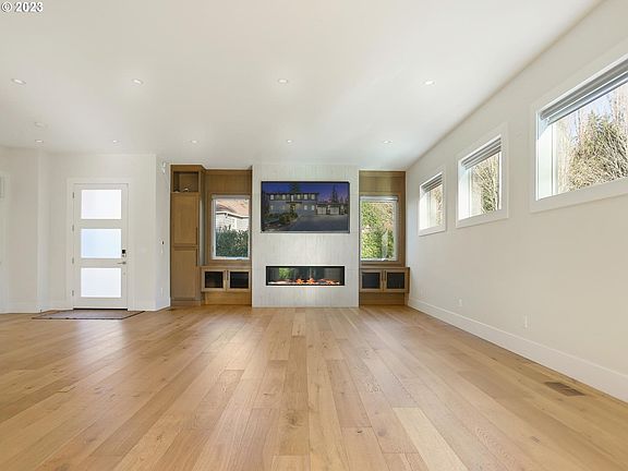 Gated, Sleek Contemporary West Linn estate! Loaded with exceptional finishes and soaring ceilings! Wide-plank White Oak flooring throughout the main and upper levels! An incredibly spacious great-rm features a beautiful gas fireplace with built-ins and a huge TV! A marvelous chefs kitchen with stainless steel Viking appliances, an oversized island with multi-color undermount LED lighting, leathered granite counter tops, and plenty of storage! Main level primary suite with gas fireplace, Spa-like bath, and an incredible walk-in closet! 3 bedrooms up. 1 En-suite, Bedroom's 2 & 3 share a Jack & Jill Bath! A cozy family rm space with built-ins, another huge TV, and a nice Juliet Balcony. Stylish Lower-level bonus room with wet bar, beverage fridge, dishwasher, built-in surround sound speakers, stained cement floors & and lower-level full bath, and a matching pool table! It is a perfect space for hosting friends and family to watch the big game! TWO laundry rooms for maximum convenience - main floor + upper level! Wall controlled electronic blinds throughout. Covered IPE (hardwood) deck with electric heaters for year-round enjoyment! This is a truly exceptional residence that will not disappoint - come see this one soon!!