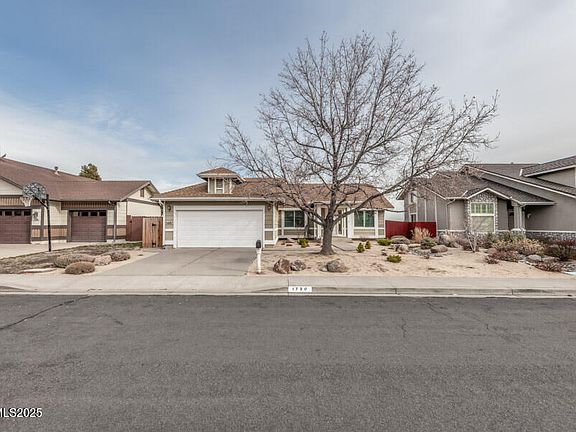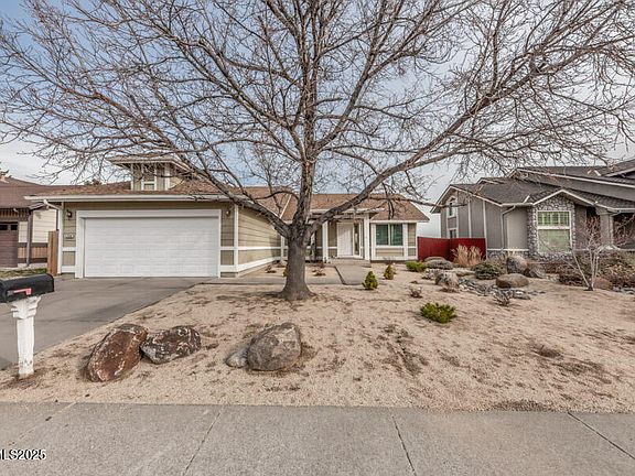 A true single story gem with no HOA tucked away in a prime location, offering privacy, breathtaking mountain views, and city lights of Reno by night. This beautifully remodeled 4-bedroom, 2.5-bath home has been thoughtfully redesigned to create an open, inviting living and kitchen space perfect for both everyday living and entertaining. Hardwood floors flow throughout the home, complemented by freshly repainted walls that add a clean, modern feel. The spacious open kitchen is a chef's dream, featuring granite countertops, a large island, and a charming garden window where plants can truly flourish. The primary bedroom offers a peaceful retreat with double-door entry leading to the ensuite bathroom and walk-in closet. Spectacular landscaping surrounds the home from front to back, showcasing an incredible multi-level circular paver deck, ideal for entertaining, relaxing, and enjoying expansive views and exceptional privacy with open space behind. Energy-saving features, quality upgrades, and meticulous care make this home truly stand out. Conveniently located close to shopping, restaurants, banks, the post office, and grocery stores, this property perfectly blends comfort, convenience, and natural beauty. With its unbeatable location, stunning views, privacy, and extensive remodel, this exceptional home won't last long, a truly must-see opportunity to start the new year right.