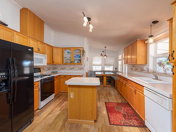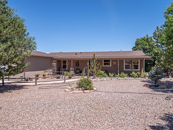 Awesome Views from this wonderful 3 bed, 2 1/2 bath 1405 sq ft home! 2.5 acre property is completely fenced with welded steel pipe, electric fenced lots of mature trees and a great 2 stall barn, tack, hay room. Large 2 car garage with is own 1/2 bath, front and back covered patios, good well. Nice kitchen with island and built in dining room table, new flooring and move in ready. Don't miss this one- well priced and ready to move!