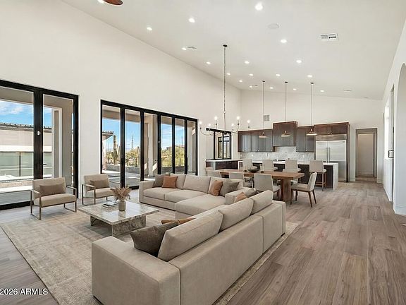Thoughtfully designed split-floor planHigh ceilingsLow-maintenance desert landscapingExpansive windowsHigh-end materials and finishesLarge glass doors