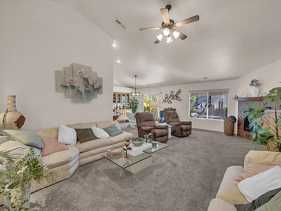 Move in ready! This home offers a spacious living room with cozy fireplace and filled with natural light. The kitchen is designed for both style and function featuring granite countertops and stainless appliances. The primary suite boasts vaulted ceilings, an ensuite bath with dual sinks, separate shower and tub and a generous walk in closet. A 3 car garage provides ample storage, while the private backyard showcases beautiful views.
