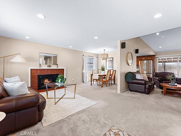 Welcome to this beautifully maintained home nestled on a quiet cul-de-sac, where vibrant rose bushes and a welcoming front entrance greet you with warmth and charm. Step inside to discover a light-filled living room featuring a classic brick fireplace and a large picture window that invites natural sunlight to pour in—creating the perfect space for cozy evenings or relaxed mornings. Adjacent is a stylish dining area accented by a modern, multi-tier wicker light fixture, setting the tone for elegant entertaining. The remodeled kitchen is a chef’s dream, complete with granite countertops, custom cabinetry, and sleek stainless-steel appliances. It opens seamlessly into a spacious family room with soaring ceilings and recessed lighting—ideal for both entertaining guests and everyday living. A sliding glass door leads to a covered patio and private backyard oasis, perfect for hosting outdoor gatherings or enjoying quiet afternoons. On the right wing of the home, you’ll find three generously sized bedrooms and two full bathrooms. The spacious primary suite offers direct access to the backyard and includes a private en-suite bathroom, providing a comfortable and tranquil retreat.