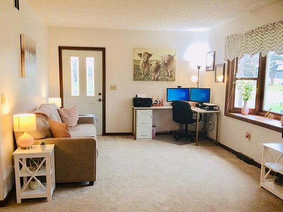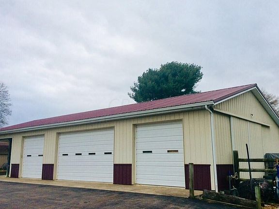 Desirable ranch on Two Acres. Recently painted with a pleasing decor throughout! Open floor plan greets you upon entering the home. Updated kitchen with refinished cabinets has laminate flooring, big pantry & appliances remain. 1st floor laundry room is multi use space. Second bath has newer toilet('21) & brand new shower/fixtures- Nov. 22. Owners bedroom w/ walk in closet is privately located off separate hallway. Large storage closet in hallway, new ceiling fans, flag pole in front yard -many unique features! Newer roof, new wood privacy fence added in 2021 incl. metal gate at driveway. COMPLETELY FENCED lot behind home. Detached garage near house has multiple possibilities. Covered patio sits aside pole barn w/3 garage doors. Room for boat, RV, work truck & more! Motivated seller