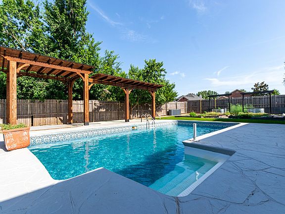 Welcome to 17300 Zinc Drive, an exquisite 3-bedroom, 2-bathroom home in Edmond. This remarkable property offers a luxurious oasis with a pool, patio, and shed, all within a fully fenced yard. The high vaulted ceilings create an airy ambiance, while the open floor plan allows for seamless flow and natural light throughout.