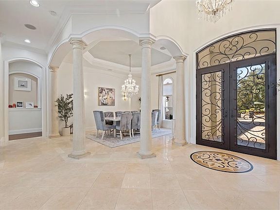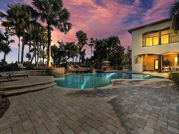 This beautiful lakefront home is truly one of the standout properties in all of North Tampa. Sitting on a private lakefront lot with over 300 feet of shoreline, it offers a peaceful, private setting that feels like your own personal retreat. Behind the gates, the home was custom built with care, combining classic craftsmanship with the kind of amenities you’d expect at a luxury resort. When you walk in, the home immediately welcomes you with its grand two-story foyer. Sunlight pours in through a huge picture window, giving you an instant view of the lake. Rich wood floors, detailed trim, tray ceilings, designer lighting, and a gorgeous wrought-iron staircase all set the tone for a home that is elegant yet inviting. A beautiful stone fireplace adds warmth and charm to the main living area. The kitchen is truly a chef’s dream. It’s designed for people who love to cook or entertain with two Wolf ranges, Sub-Zero refrigeration, Fisher & Paykel dish drawers, custom cabinetry, and a hidden walk-in pantry that even includes a wine fridge. The kitchen opens right into the living space, and brand-new 10-foot impact glass sliders fold open to bring the outside in. Step outside and you’ll feel like you’ve entered your own private resort. The 12-foot-deep, gas-heated pool features a rock waterfall, spa, sun shelf, swim-up table, and even cooling misters for hot days. Tropical landscaping surrounds you, and the lake creates the perfect backdrop. The covered lanai includes an outdoor kitchen, a cozy gas fireplace, and a dedicated pool bath that features both a sauna and a steam shower perfect for relaxing or entertaining friends and family. Upstairs, the large game and media room is designed for fun. It includes a built-in bar, multiple TVs, a new projector and screen, a gas fireplace, and a private balcony overlooking the pool and lake. A spiral staircase connects the balcony to the backyard so the fun can flow indoors or out. The primary suite feels like a peaceful getaway. Oversized bay windows give you sweeping lake views, and a double-sided gas fireplace adds a romantic touch. The spa-style bathroom includes marble finishes, dual vanities, a soaking tub, and an oversized shower with four shower heads. All of the additional bedrooms come with private bathrooms and walk-in closets, making them comfortable for family or guests. The home also includes a spacious office with French doors for anyone working from home. Important improvements have already been taken care of for you, including a 2020 roof, whole-house surround sound, new exterior lighting, two newer pool pumps, plantation shutters, detailed millwork, and a full security camera system that stays with the home. With unmatched craftsmanship, thoughtful features, and a one-of-a-kind lakefront setting, this home offers a luxury lifestyle that’s both elegant and truly comfortable. It’s a place meant to be enjoyed and cherished for many years to come.