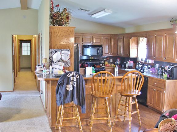 Open concept living area with vaulted ceilings throughout. Kitchen features large walk in pantry, bar seating and plenty of storage. Master Suite has walk-in closet, separate his and her vanities, and large corner jetted tub. Laundry room has nice storage cabinets. Large front porch, back patio with french door access, attached garage and nice large shop building round out this unique property.
