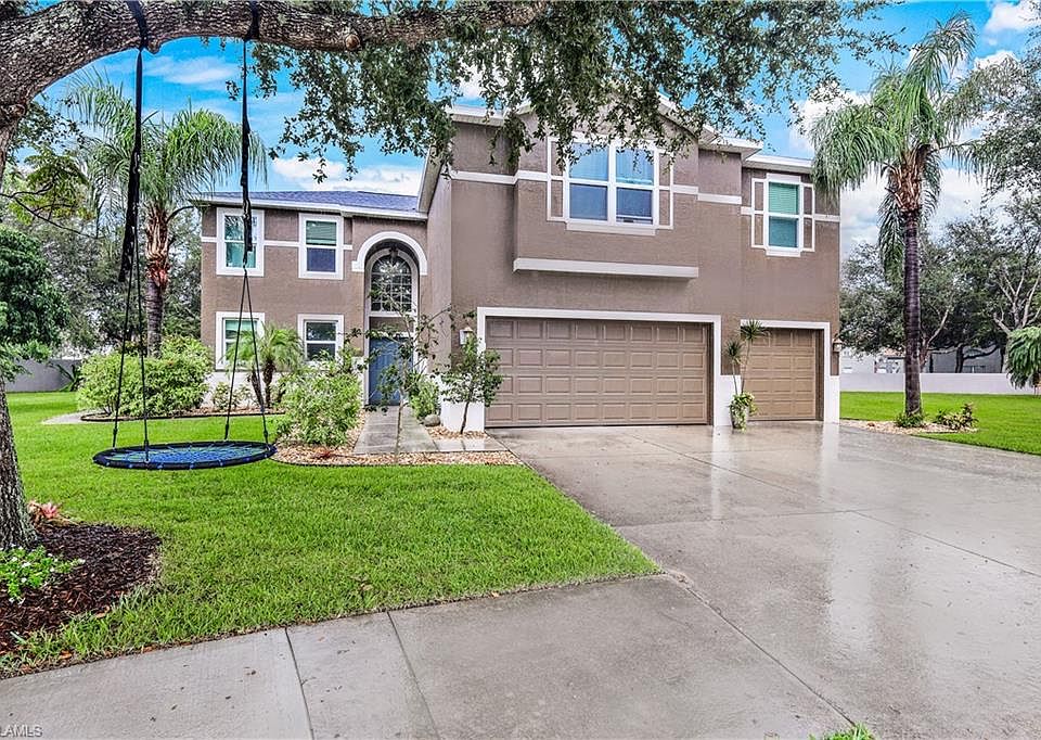 Low Hoa, not located in a flood zone, new roof, Pella impact windows, oversized lot, 5 bedrooms, 3 car garage, the list goes on. Perfectly nestled on a cul-de-sac with almost a half acre of lush landscaping and mature trees, there’s so much to love about this spacious 5 bedroom, 5 bathroom+ LOFT pool home! Convenience meets luxury with the open living area overlooking the pool, spacious modern kitchen, formal dining room and master suite on the main floor while 4 bedrooms await upstairs with a massive loft for additional entertaining. Live the Florida lifestyle to the fullest on the screened, extended lanai. Whether dining al fresco or taking a dip in the heated pool – guests will appreciate the dedicated pool bath. Seller improvements include updated half baths, new roof (2023), newer AC, new garage doors for the 3-car garage; new Pella impact windows, new pool pump, refinished saltwater pool and new washer and dryer. Low HOA fees and no flood insurance is required. Community amenities include Clubhouse, playground, gym and sports courts. Prime location near schools, I-75, airport and Gulf Coast Town Center with an abundance of shopping and dining. This home is perfect for your family and is move in ready!