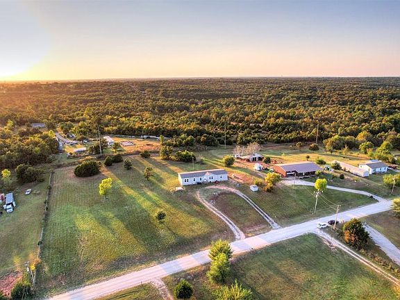 FANTASTIC 4-BEDROOM HOME ON OVER 2.6 ACRES WITH INCREDIBLE SUNSET VIEW!! Just PERFECT for large and growing families looking for peaceful country living! A gorgeous stretch of land, partially fenced with large circle drive and huge STORM SHELTER. You will LOVE the spacious split floor plan, featuring two separate living areas, bright windows, recessed lighting, durable LVP wood-grain flooring, and contemporary barn door accents. A beautiful open kitchen concept complete with breakfast bar, updated appliances, HUGE pantry and tons of cabinet space. Large primary bedroom, with walk-in closet and fabulous ensuite bath that includes double vanities, separate shower and HUGE soaker tub. The 3 additional bedrooms are all good sized, each with big closets, double pane windows and continued durable LVP flooring throughout. The 2nd bath is the perfect layout for big families, which includes two separate vanities and private shower space! Other great features include: large laundry, Hot water heater updated 2024, programmable thermostat, ADT security and OEC fiber High Speed Internet. This wonderful country home is clean, pristine and MOVE IN READY! Schedule your private showing today!