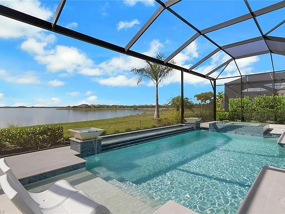 Available for 2026 season! On the Big Lake with amazing Sunset Views! Experience luxurious Florida living in this stunning 4+den, 3-bath single-family home in the exclusive WildBlue community. Designed with impeccable taste, this residence features a spacious open layout with tile flooring throughout, a chef's dream kitchen, and an inviting great room that flows seamlessly to the screened lanai. Enjoy breathtaking lake views from your private outdoor oasis complete with a sparkling pool, relaxing spa, and a fully equipped outdoor kitchen perfect for entertaining. The 3-car garage provides ample space and storage for your lifestyle needs. WildBlue offers resort-style amenities including a private lakefront beach, clubhouse with restaurant and full-service spa, fitness center, tennis, pickleball, basketball, and bocce courts, plus miles of bike and jog paths, dog park, community boat docks and ramps, and much more. Live the ultimate waterfront lifestyle in WildBlue where luxury meets tranquility.