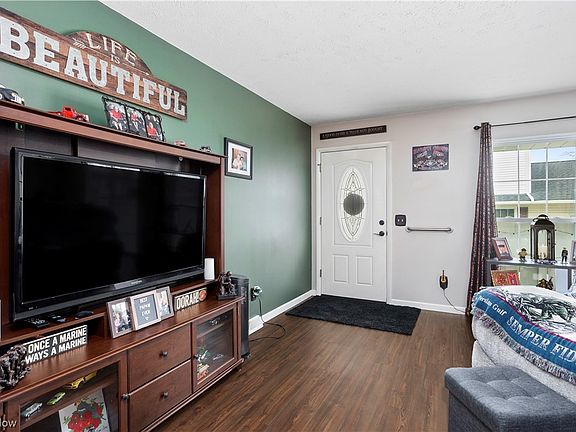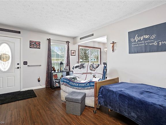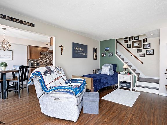 Welcome to your beautiful new home! This charming property boasts a wide range of upgrades and features that are sure to impress. The front door adds a unique and welcoming touch to the entryway. Inside, new carpet, flooring & lighting fixtures have been installed throughout, creating a fresh and modern look. The kitchen is equipped with matching Kenmore appliances, beautiful cabinetry and tile work, creating a cohesive and sleek aesthetic that is both functional and stylish. The full bath is complete with custom tile work in the shower and a non-slip soaking tub. The master bedroom is adorned with crown molding, adding an elegant touch to this serene space. All windows have been upgraded to ensure maximum energy efficiency and functionality. The partially finished basement provides additional living space and endless possibilities. The new sliding door leads to a lovely concrete patio, perfect for outdoor relaxation and entertaining. Outside, the property features mature land