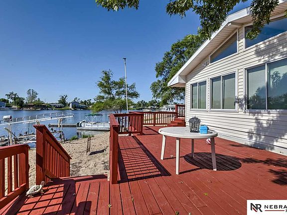 Relax , put your toes in the sand and enjoy the view! Lakefront living with updated house and huge, 36x30 garage. Lots total nearly half an acre; plenty of room to expand; fenced garden next to garage is part of property. Front room includes a pull-down bed, and there is a den in the back of the house. Heating/cooling units and water heater NEW in 2019. Kitchen and bath recently re-done, new well, and near-new carpet as well. To add extra warmth, there's both a fireplace and wood-burning stove. All appliances (mostly newer) included, and some windows just replaced. In addition to the beach, there's a deck and brick patio for entertaining. Outdoor washroom to keep sand out of house. Seller says garage will fit 4-5 cars. Security cameras to stay. Act now, and enjoy your summer on the lake!