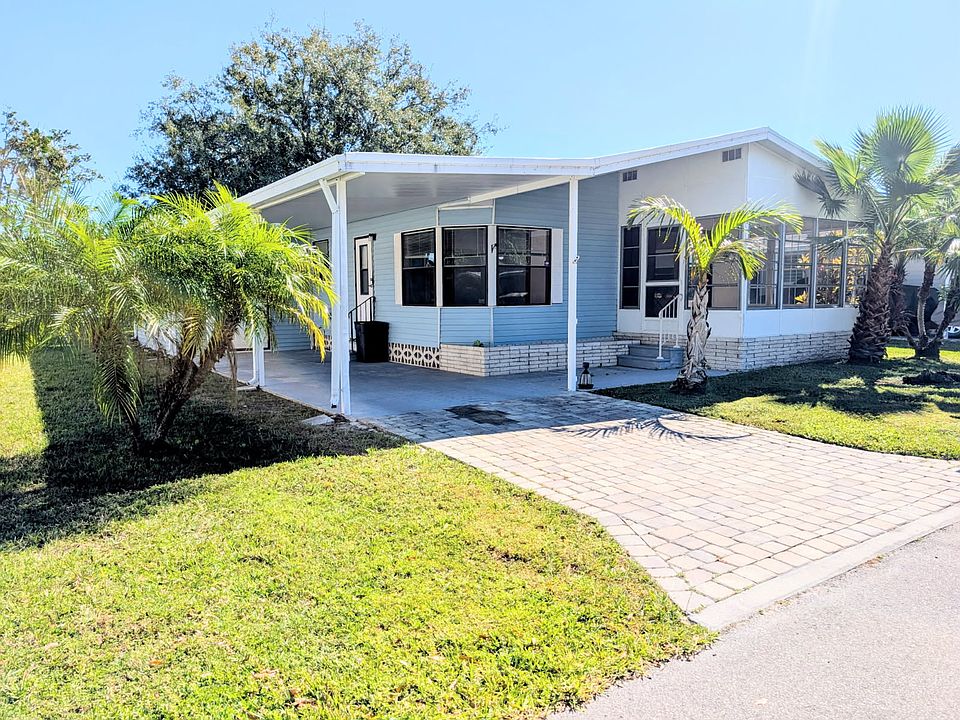 Welcome to this charming 2 bedroom, 2 bath home in beautiful Whispering Pines 55 Community! This home provides covered parking, a large attached shed, an 8 x 10 lanai and a spacious floor plan. It's just waiting for you to come and put your finishing touches! The monthly fee of $1507 is a fantastic value as it includes Land Lease, Water, Sewer, Trash, Yard Waste Services, Gated Entry; as well as, use of our resort style amenities that include heated pool and spa, firepit, cornhole, microgolf, pickleball courts, fitness center, and an awesome bark park with grooming station! Attend one of MANY monthly activities in our clubhouse and reserve it for any special event you'd like to host! Call today to schedule your tour!