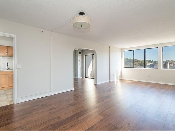 New offering in the highly sought after association of Regency Park in Washington Square! This one bedroom one bath unit is east facing with large windows providing an amazing view of Boston. The current owners have meticulously renovated the kitchen and bathroom as well as installed wood flooring, fresh paint and many additional features. The large open concept floor plan features a generous living and dining room as well as a den with access to the private screened in porch. The bedroom features a large walk in closet. There is excellent closet space throughout the unit, including additional storage outside the unit. This is a full service building with 24 hour concierge, elevators, heated pool, gym, sauna, club room, grilling area, roof deck, guest parking and more. Close to the C/D lines as well as many area shops and restaurants. Runkle School District. This unit also features garage parking and is ready for immediate occupancy and not to be missed!