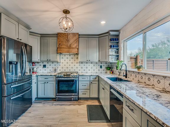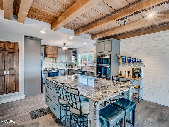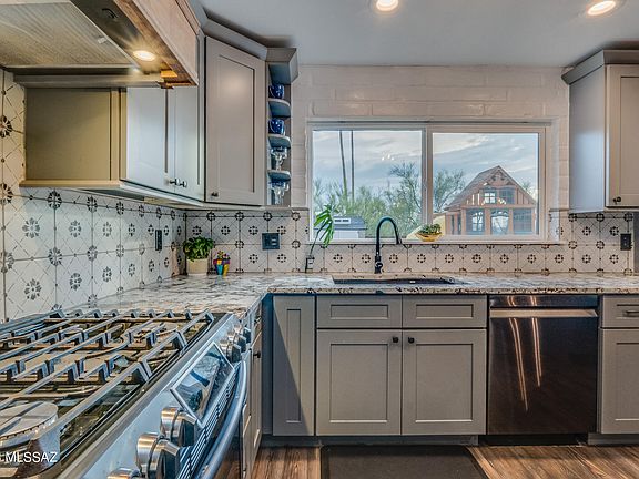 Situated at the top of a cul-de-sac, among the saguaro studded Catalina Foothills, this stunning 4 Bedroom/2Bath Burnt Adobe Territorial brings the majestic Catalina Mountains into view from your sparkling salt water pool. This updated property reflects the warmth and charm of the southwest, with modern amenities to support the function of today's lifestyle. For the aspiring chef, the kitchen is equipped with not one, but two ovens, PLUS a convection oven. Kitchen features: ample cabinetry, crown molding, gorgeous granite counters, pantry, breakfast bar, Samsung stainless steel appliances and tile backsplash, adding an elegant touch!