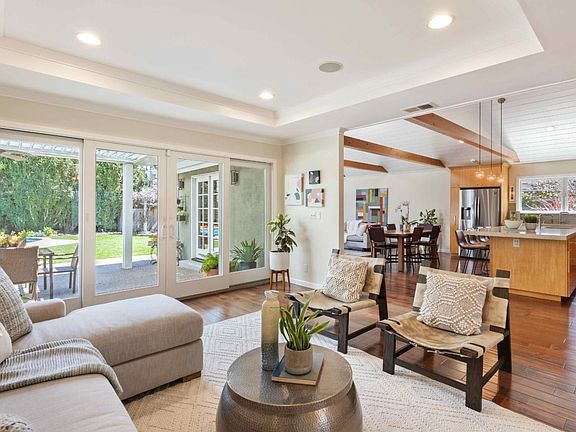 With 4 big bedrooms PLUS a large office/guest room, this beautifully designed home on a desirable street is characterized by modern yet warm elegance. It features a remodeled great room kitchen that opens to a family room with vaulted ceilings and tall windows which bathe the space with natural light. The chef's kitchen offers high end appliances and an extra large island with prep sink where everyone can gather. A separate living room, remodeled bathrooms, inside laundry, and wide plank wood floors complete this move-in ready home.